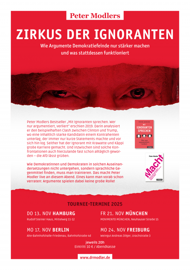 Gratis-Flyer zur Veranstaltungsreihe „Zirkus der Ignoranten“ 2025 Gratis-Flyer zur Veranstaltungsreihe „Zirkus der Ignoranten“ 2025 Macht. Mit Ignoranten sprechen Das Arroganz-Prinzip Wenn Höflichkeit reinhaut In die Stadt reiten – Essay Wie man den Wodka nicht trinkt – Essay Warum Ohnmacht so attraktiv ist und Macht so blöd. – Essay Die Manipulationsfalle Die freundliche Feindin Audiobook – Die freundliche Feindin Audiobook – Das Arroganz-Prinzip Die Königsstrategie Confronting Trump Talk – eBook Person Portfolio Sanierung von Firmen Begleitung von Führungskräften Politik-Beratung Berufliches Potenzial Seminare Alle Seminare Arroganz-Training® Ausbildung Vorträge Bücher + Audiobooks Macht. Wenn Höflichkeit reinhaut Mit Ignoranten sprechen Die Königsstrategie Die Manipulationsfalle Die freundliche Feindin Das Arroganz-Prinzip Audiobook – Die freundliche Feindin Audiobook – Das Arrogranz-Prinzip Videos Podcasts Presse Print Audio Kontakt mail_outline Gratis-Flyer zur Veranstaltungsreihe „Zirkus der Ignoranten“ 2025 Flyer zum Downloaden. In den Warenkorbshopping_cart Dr. Peter Modler Gratis-Flyer zur Veranstaltungsreihe „Zirkus der Ignoranten“ 2025